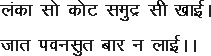 | AARATII KIIJAI HANUMAANA LALAA KI DUSTA DALANA RAGHUNAATHA KALAA KI AARATI KIIJAI… May we now perform the ceremony of Aarti in adoration of our beloved Hanuman who is the slayer of the wicked and a quintessential part and parcel of Rama himself. May we.. JAAAKE BALA SE GIRIVARA KAANPE BHUUTA PISAACHA NIKATA NAHIN JHAANKE His might causes even the Himalayas to tremble (with fear) and ghosts and goblins to keep their distance. May we perform… DE BIIDAA RAGHUNAATHA PATHAAE LANKAA JAARII SIYA SUDHI LAAE Shri Rama dispatched him on the all-important mission to Lanka (the isle of demons) which he reduced to ashes before bringing the tidings of Sita. LANKAA SII KOTA SAMUDRA SII KHAAII JAATA PAVANA SUTA NA LAAII Hanuman, Son of the Wind, leapt across the ocean and the rampart of the city in the twinkling of an eye. BAAEIN BHUJAA SE ASURA SANHAARE DAAHINII BHUJAA SURA UBAARE With his left arm he slew the demons and with the right saved the gods and sages. LANKAA JARAAI ASURA SANHAARE RAAJAARAAMA KE KAAJA SANVAARE Having set Lanka on fire he slew the fiends and accomplished the task that Rama had assigned him. ANJANIIPUTRA MAHAABALDAAII DEVA SANTA KE SADAA SAHAAII O Son of Anjani, you bestow great might (on your votaries) and always provide succour to gods and sages. LAKSHMANA MUURCHITA PADE SAKAARE LAAII SANJIIVANI PRAANA UBAARE When Lakshmana was lying unconscious, you brought the life-saving herb at daybreak, which saved the dying warrior (restored his vital breath). PAITHI PAATAALA TODII YAMA KAARE AHIRAAVANA KE BHUJAA UKHAADE Descending to the nether regions, you broke open the prison-gates of Yama and pulled Ahiravana’s arms apart. SURA NARA MUNI JANA AARTII UTAAREIN JAI JAI JAI KAPIRAAJA UCHAAREIN Gods, humans, sages and devotees chant your Aarti and glorify you again and again. KANCHAN THAARA KAPUURA SUHAAII AARTII KARATA ANJANI MAAII In a golden platter with camphor placed beautifully in it, your mother, Anjani, waves the lustral lamp round you and hymns your praises. JO HANUMAANA JII KII AARATII GAAVE He who hymns Hanuman’s Aarti (or performs the last ceremony with waving of lights around him) goes straight to Vaikuntha (the celestial abode of Rama) and attains salvation.BASI VAIKUNTHA PARAMA PADA PAAVE | |